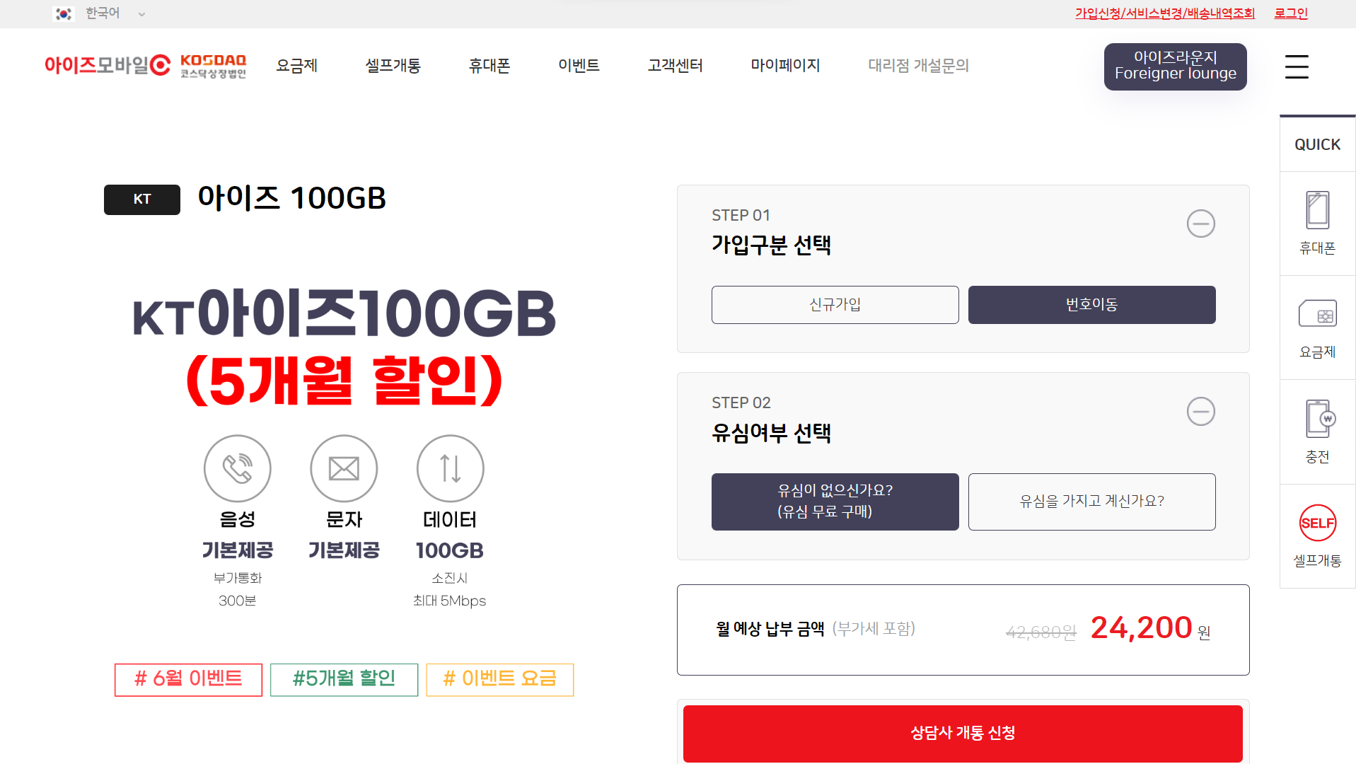 저는 개통 신청 클릭하고 이후 나오는 페이지대로 절차를 진행했습니다. (그냥 나오는대로 했다)