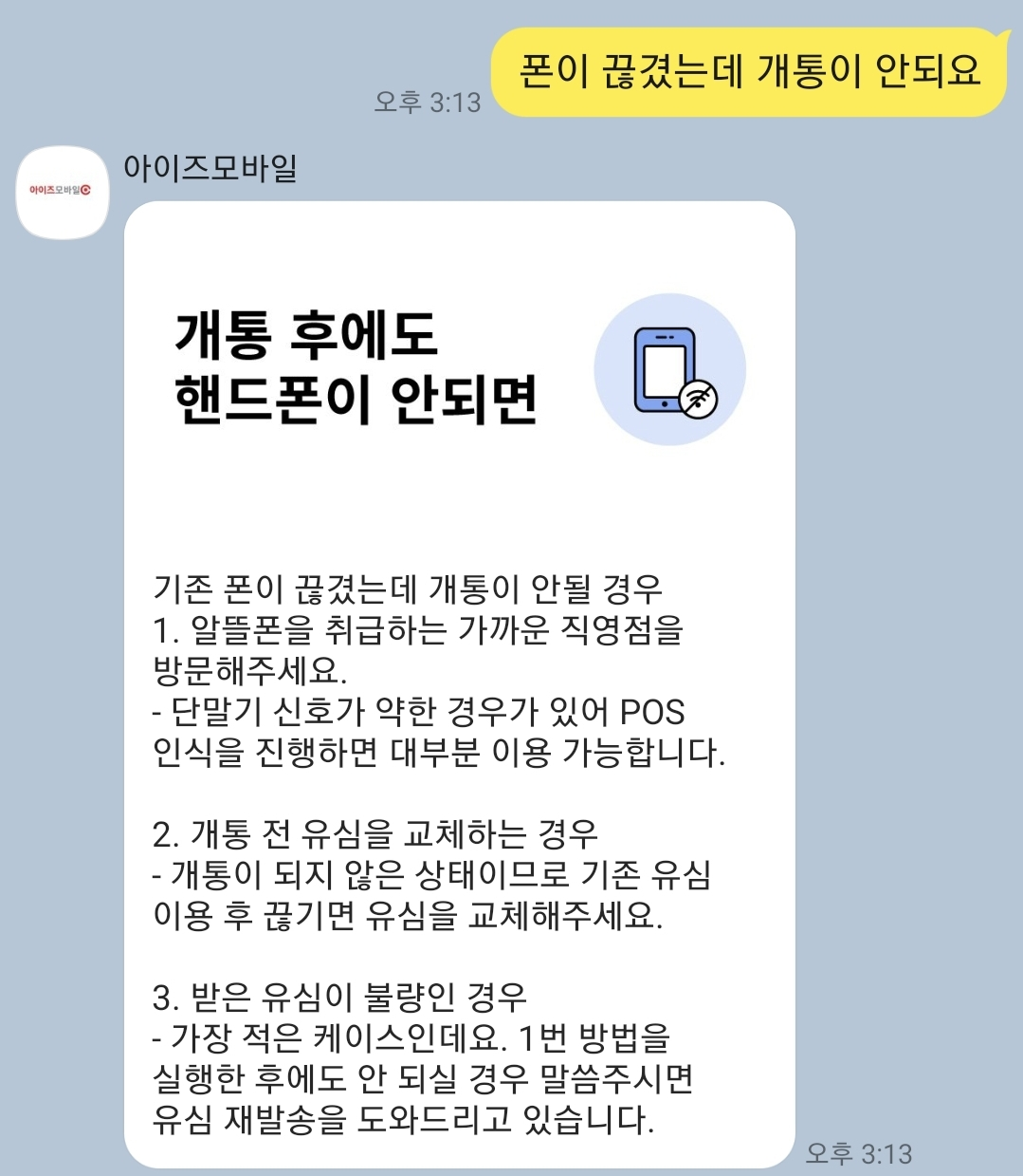 2. 동의가 완료되시게 되면 일반적으로 2~3시간 이내 개통이 진행되며 기존 폰은 끊기게 됩니다. (기존 통신사 해지 상태)