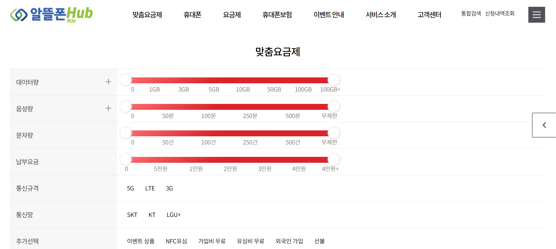 알뜰폰 허브에서 본인이 원하는 조건의 요금제 찾기