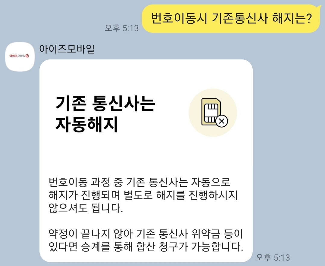 번호이동 과정 중 기존 통신사는 자동으로 해지가 진행되며 별도로 해지를 진행하시지 않으셔도 됩니다.